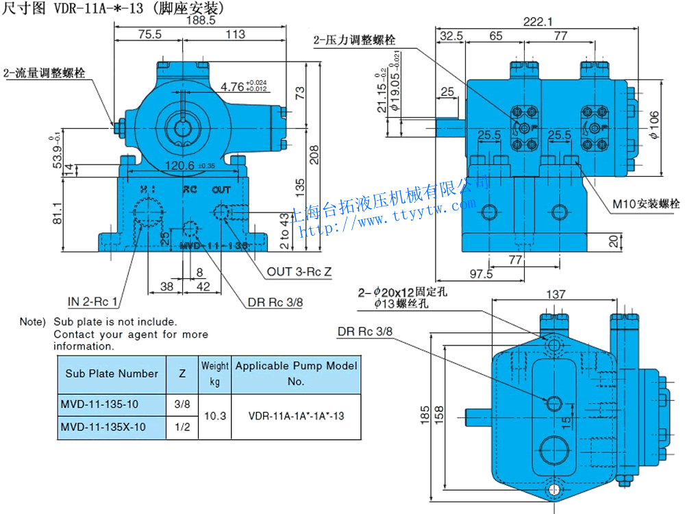 雙聯(lián)低壓變量葉片泵VDR-11A-*-13尺寸圖下載 雙聯(lián)低壓變量葉片泵VDR-11B-*-*-13尺寸圖下載