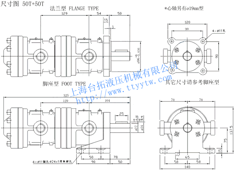 雙聯(lián)定量葉片泵50T+50T尺寸圖
