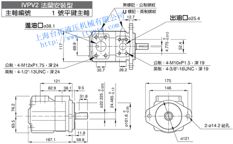 (r/min)法蘭型 腳座型 IVPV1 2 7.5 138 1800 138 1500 138 1200 600 18.5 21.5 3 10.2 4 12.8 207 157 5 16.7 6 19.2 7 22.9 8 26.2 10 31.0 11 35.0 12 37.9 157 138 14 44.2 138 IVPV2 10 32.5 172 1800 157 1500 138 1200 600 29.5 39 12 38.3 14 43.3 15 46.7 17 52.5 19 59.2 21 65.0 25 78.6 138 138 IVPV3 17 53.3 172 1800 157 1500 138 1200 600 43 52.5 21 66.7 25 79.2 30 95.0 32 100 35 109 38 118 42 134 138 138 IVPV4 30 96.0 172 1800 157 1500 138 1200 600 71 96 35 109 38 128 42 134 50 156 60 189 67 210 157 138 75 236 138 備注:●代號(hào)是在1200r/min和6.9bar下的額定容量US gpm?!镉浱?hào),允許0.5秒以內(nèi),超過(guò)"最高使用壓力"10%的瞬間(尖峰)壓力。
