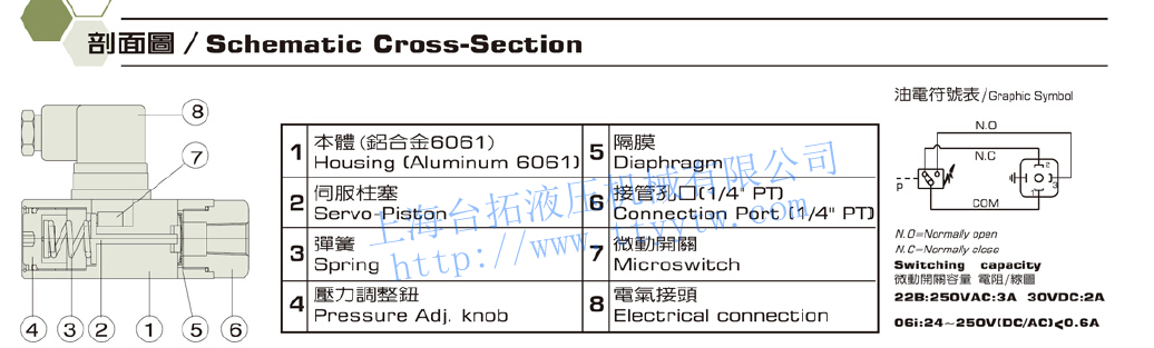 DNP -08K -21B 型式 壓力調(diào)整范圍 設(shè)計(jì)號 一般型隔膜式 見規(guī)格表 21B 壓力繼電器DNP規(guī)格表