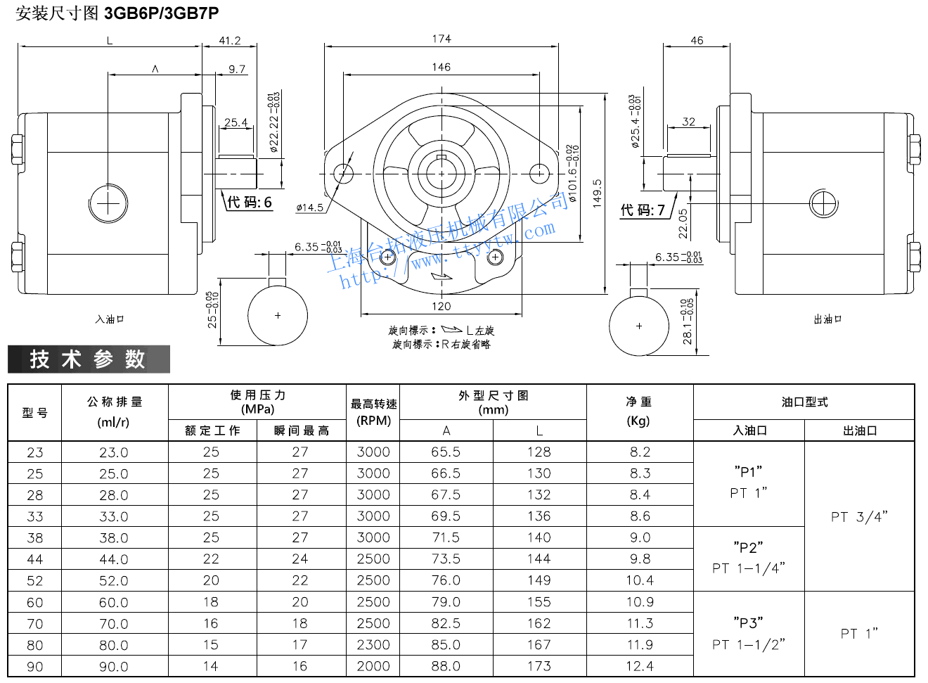 高壓齒輪泵3GB6P2,3GB7P2規(guī)格表