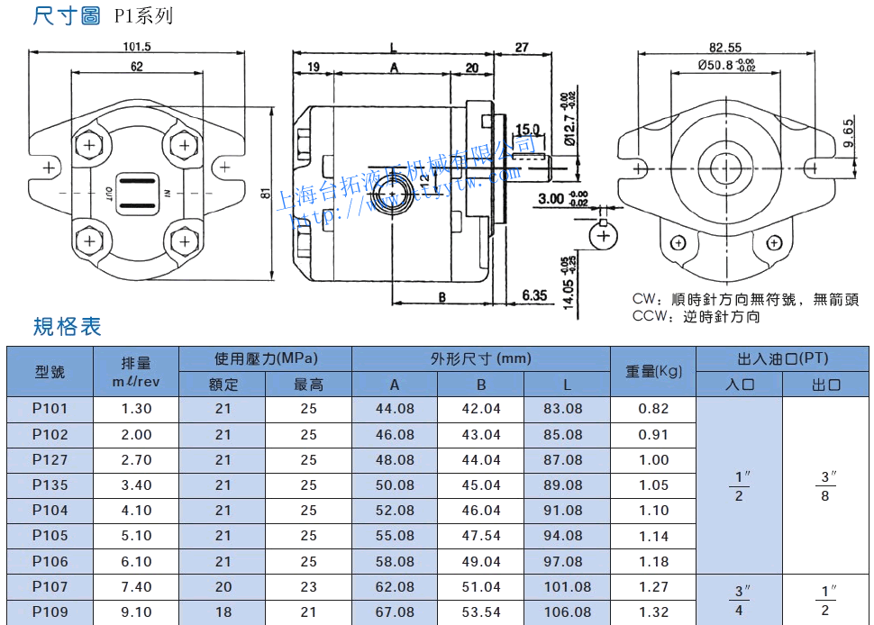 SAE“AA”標(biāo)準(zhǔn)型 定量齒輪泵P1系列規(guī)格表