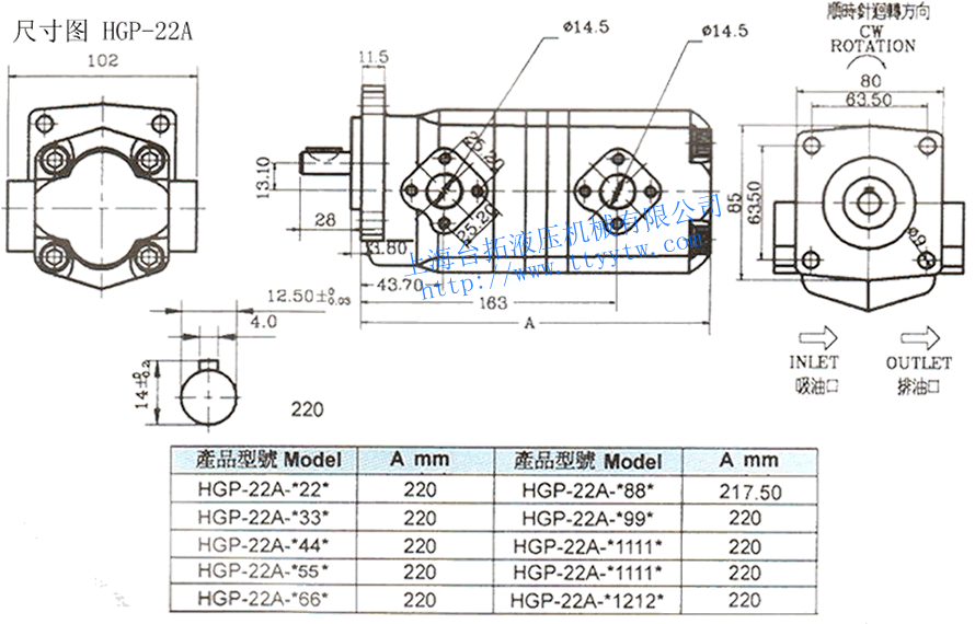 高壓雙聯(lián)齒輪泵HGP-22A具有4種形式尺寸。流量可達108 lpm,高壓力250 bar??烧D、反轉、正反轉。