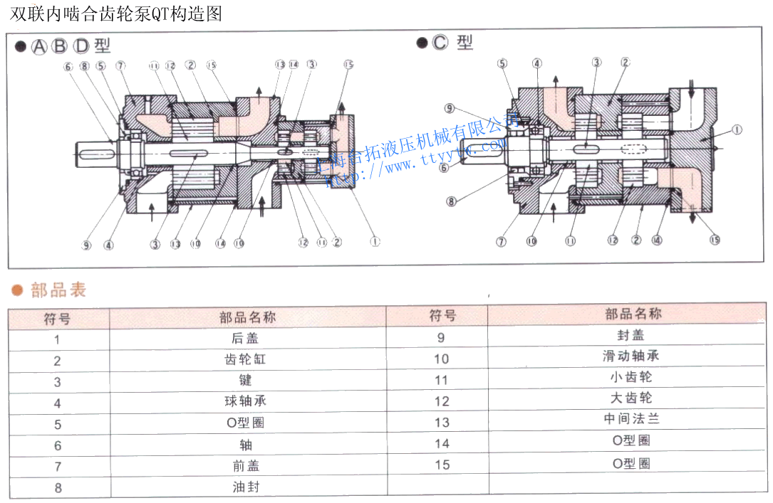 雙聯(lián)內(nèi)嚙合齒輪泵QT通過一根共用的軸來驅(qū)動各種獨(dú)立的2臺泵的一種組合泵。