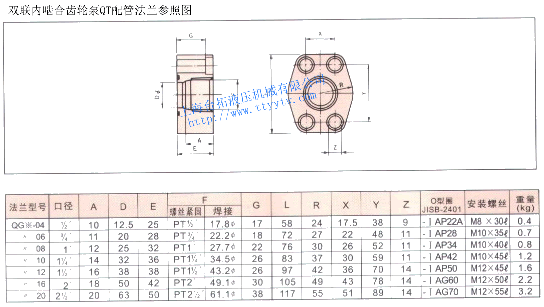 雙聯(lián)內(nèi)嚙合齒輪泵QT配管法蘭參照圖