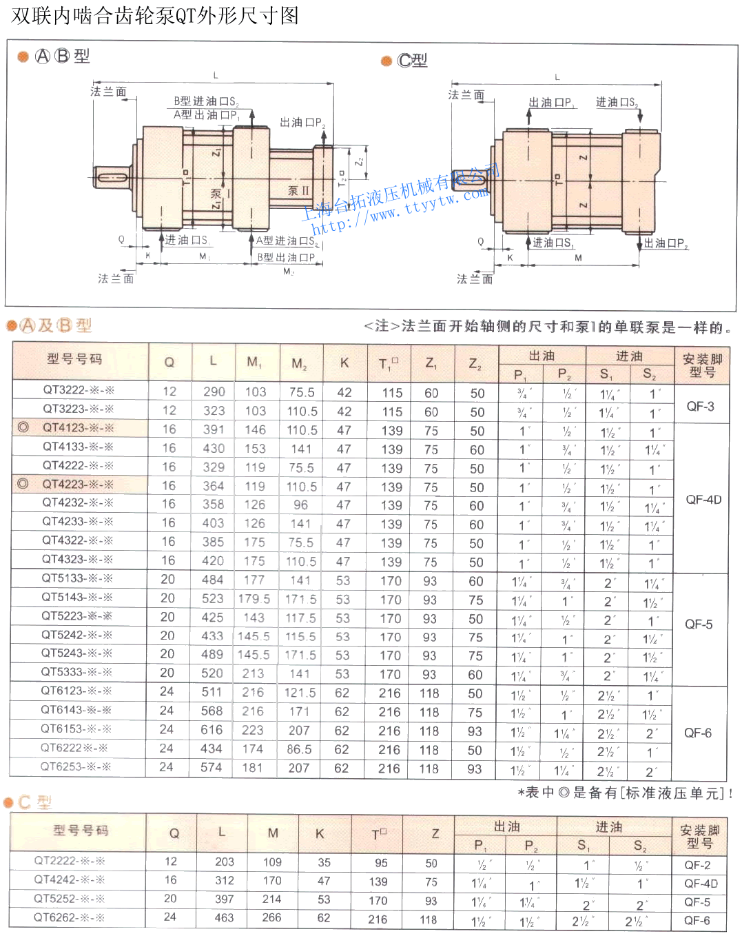 雙聯(lián)內(nèi)嚙合齒輪泵QT外形尺寸圖