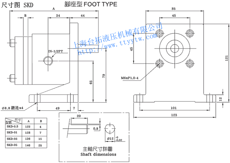 cc/rev配管尺寸 回轉速度r.p.m 重量(kg) 出口 入口 最低 最高 SKD-0.5 70 0.5 3/8" 3/8" 300 1200 3.3 SKD-01 1 3.3 SKD-03 3 3.5 SKD-05 5 3.9 化工泵SKD系列尺寸圖