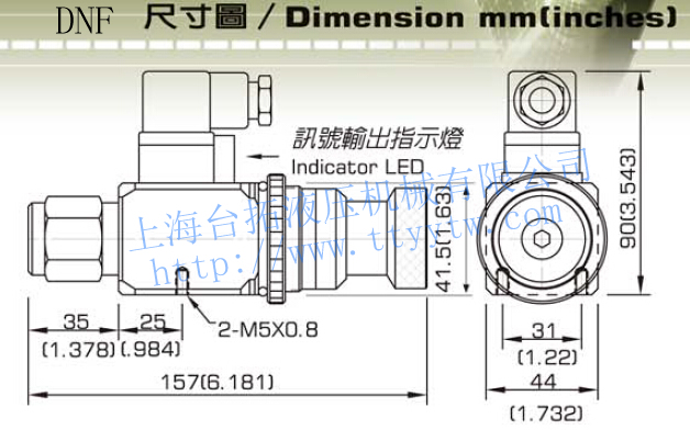 壓力繼電器DNF壓力直讀式,面板固定型,接管口徑:1/4" PT(PF,NPT)內(nèi)牙,負載:5A-125,250VAC,LOAD:5A,30VDC,0.15A,125VDC。