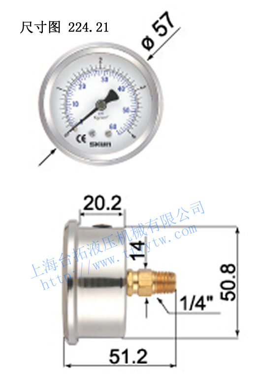 臺灣協(xié)鋼SKON充油式壓力表224.21尺寸圖