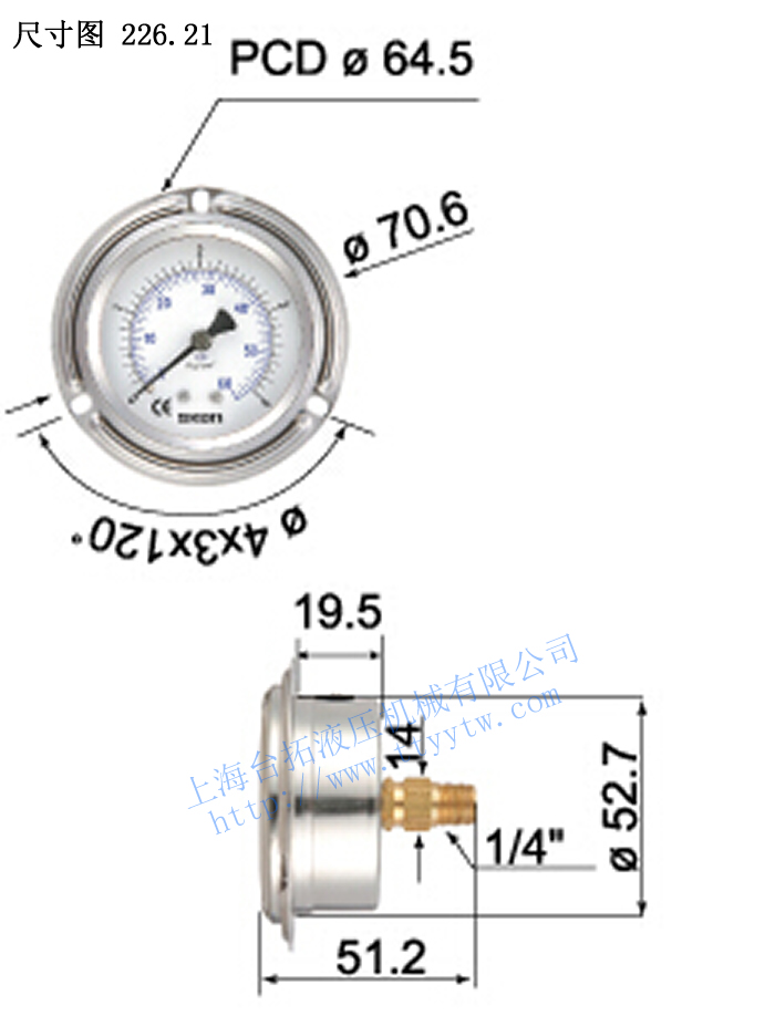 臺灣協(xié)鋼SKON充油式壓力表226.21尺寸圖
