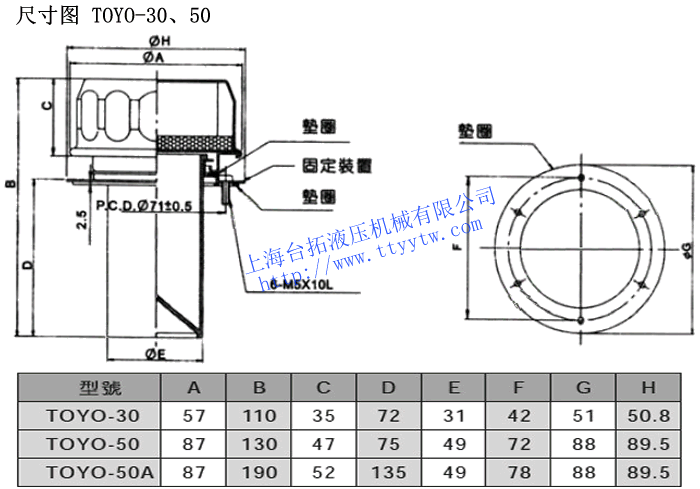 TOYO -50 - -P -R 系列號(hào)碼 濾網(wǎng)直徑 濾網(wǎng)型式 濾網(wǎng)材質(zhì) 規(guī)格 加油口 30:?30mm