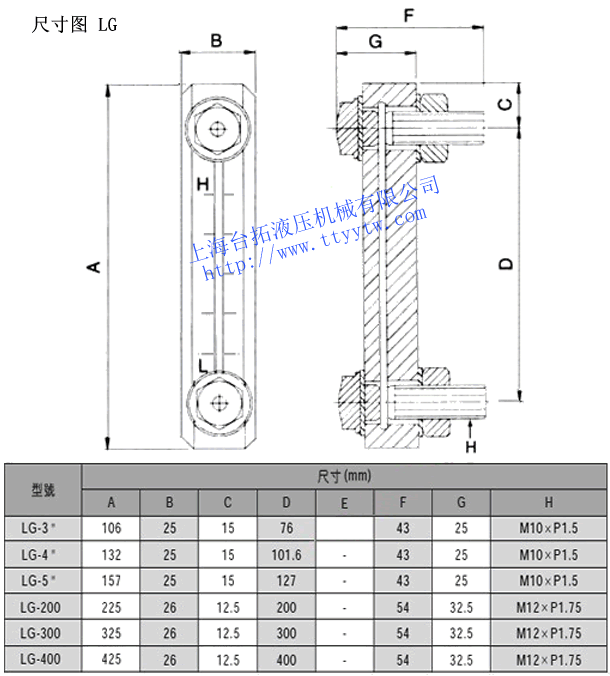 500:500mm液位溫度計(jì)LG規(guī)格表