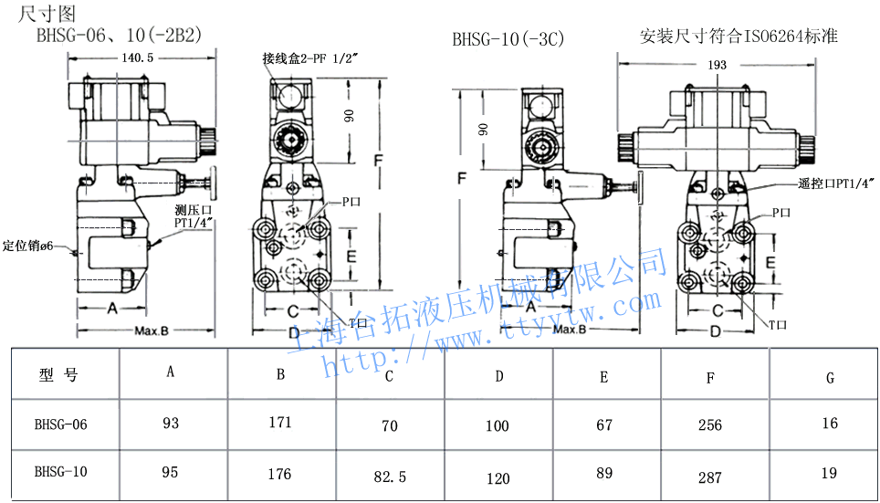 3P:三段壓力控制電磁溢流閥BHSG,BHST規(guī)格表