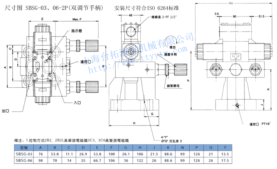 電磁溢流閥SBSG-03,06-L/R尺寸圖下載 電磁溢流閥SBSG-03,06-2P(雙調(diào)節(jié)手柄)尺寸圖下載
