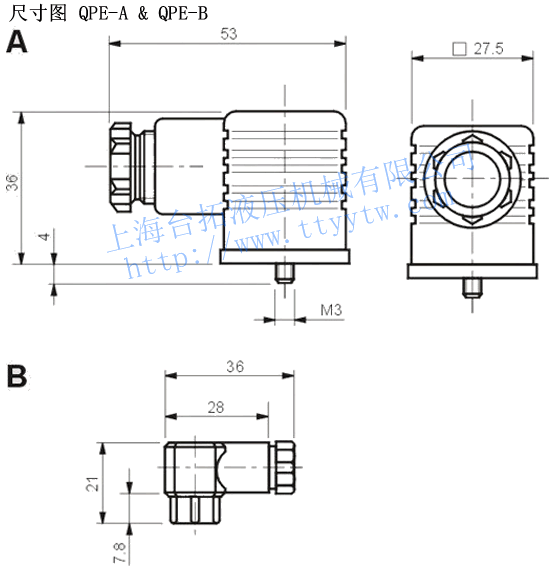 閥插頭QPE-A,QPE-B外形尺寸圖
