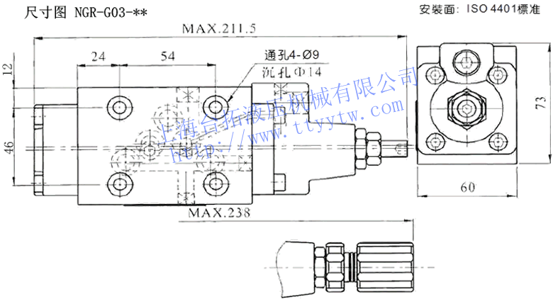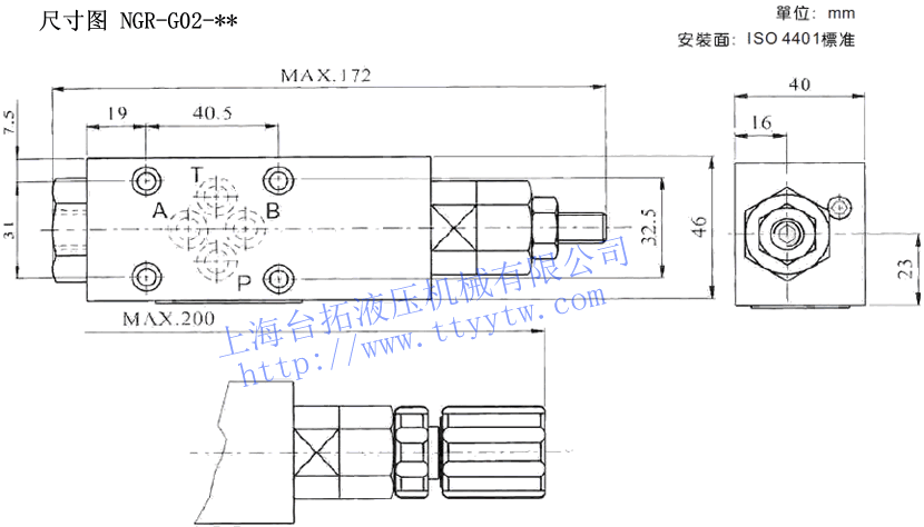 2:1~14≤0.2 M5×40L M02系列 NGR-G03-** 50 M8×30L M03系列 疊加式配重閥NGR尺寸圖