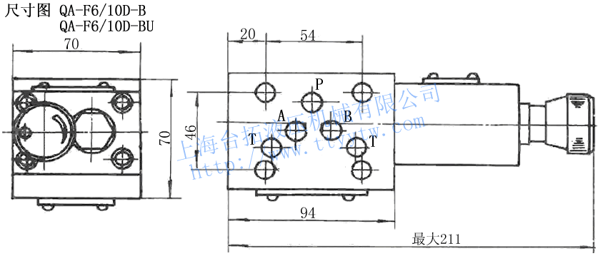QA -F 6/ 10 D A U 系列號碼 公稱壓力 調(diào)整閥通徑 該閥所屬系列 安裝方式 元件進(jìn)出口油路 出口節(jié)流 單向調(diào)速閥 20Mpa ?6 ?10 疊加式 A:A出口