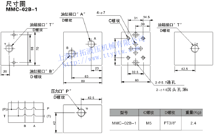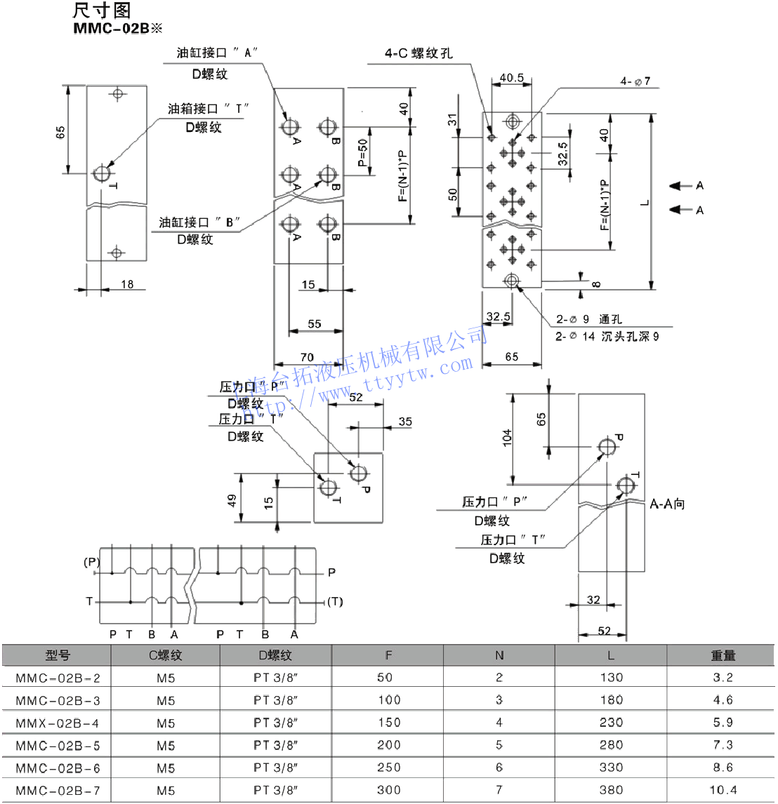 MMC -02 B -3 系列號(hào)碼 規(guī)格 進(jìn)出油口位置 通數(shù) 標(biāo)準(zhǔn)型油路塊 02:1/4"