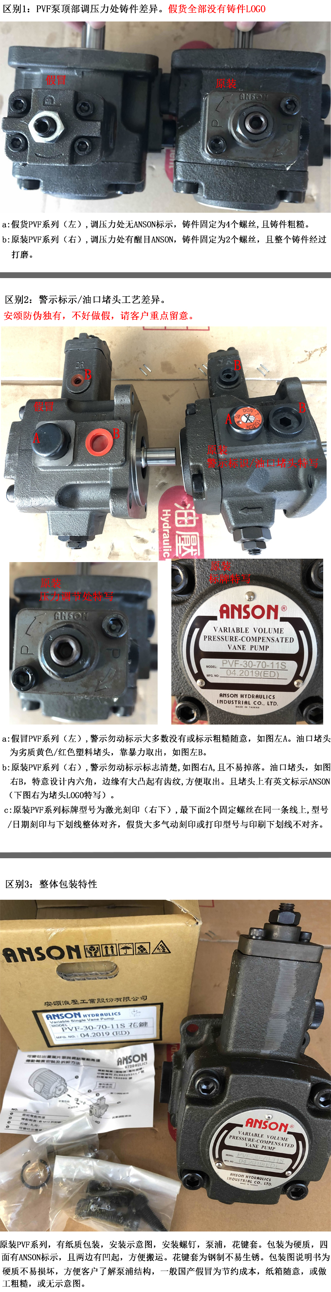 上海臺(tái)拓液壓機(jī)械有限公司為安頌液壓工業(yè)股份有限公司授權(quán)代理商,鑒于最近幾年安頌泵浦熱銷(xiāo),與此同時(shí)假冒偽劣產(chǎn)品也越來(lái)越多,本著維護(hù)安頌ANSON品牌、客戶權(quán)益角度,現(xiàn)整理真假安頌產(chǎn)品特征,請(qǐng)留意。