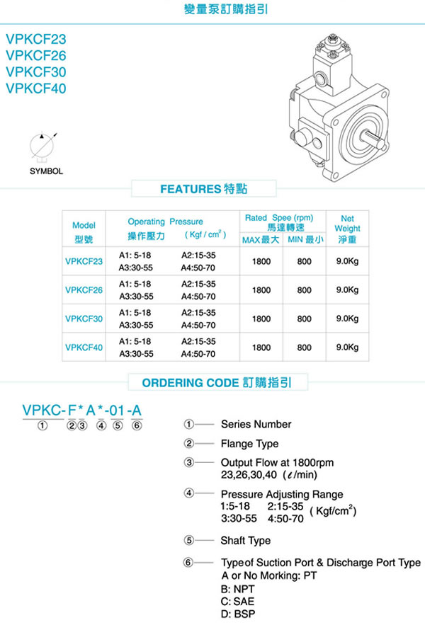 產(chǎn)品型號:變量泵VPKCF23/26/30/40