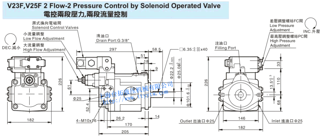 變量柱塞泵V23F,V25F尺寸圖下載 變量柱塞泵V23FG,V25FG尺寸圖下載