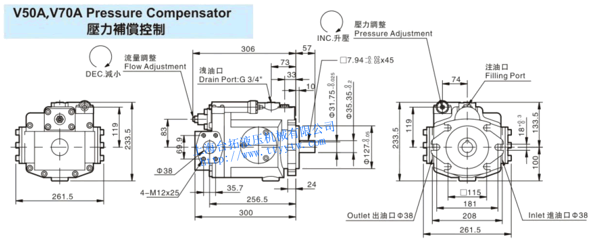 變量柱塞泵V50C,V70C尺寸圖下載 變量柱塞泵V50D,V70D尺寸圖下載