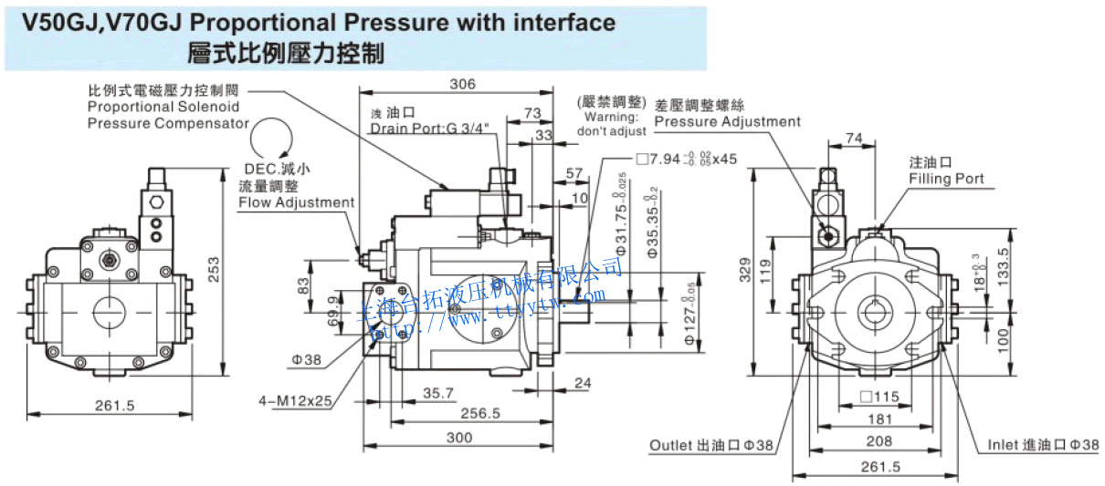 變量柱塞泵V38G,V42G尺寸圖下載 變量柱塞泵V38GJ,V42GJ尺寸圖下載