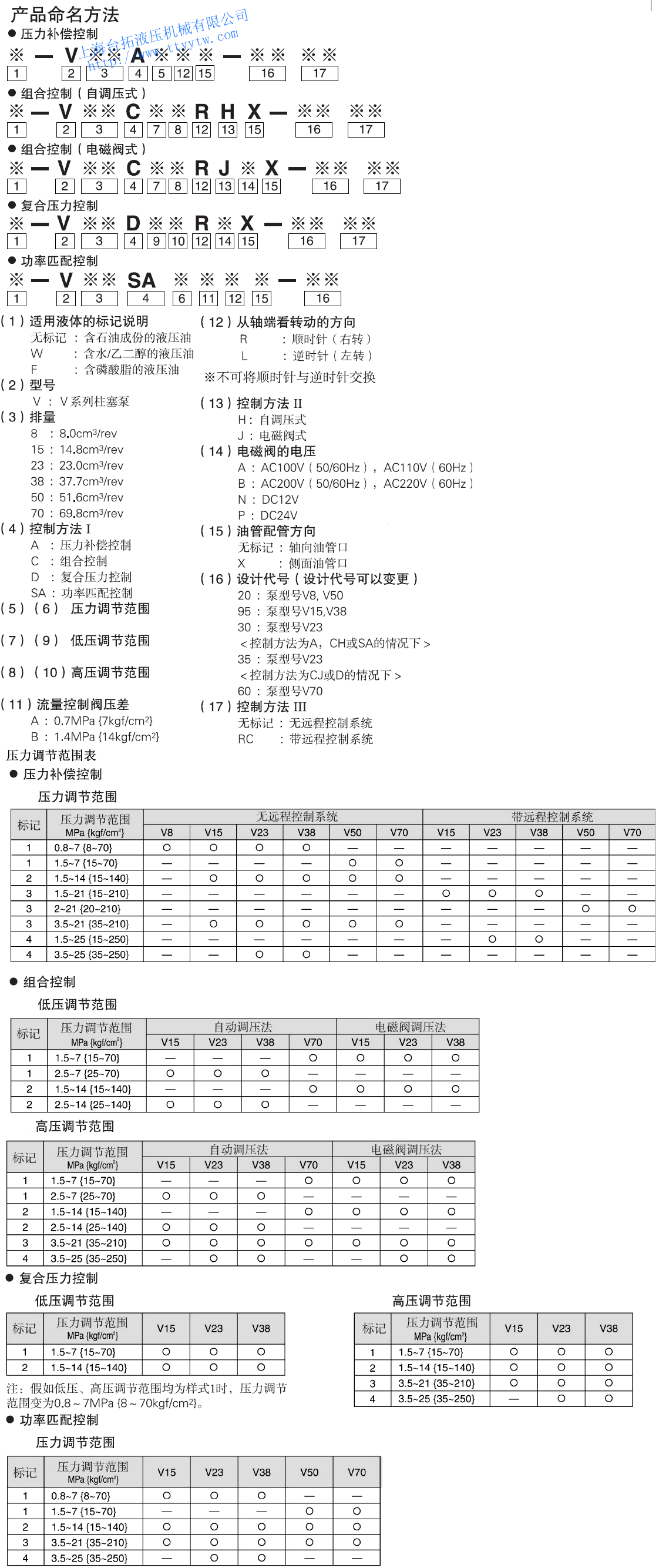 制系統(tǒng)備注:控制方法為A,CH或SA的情況下設(shè)計代號為35泵型號為V23??刂品椒镃J或D的情況下設(shè)計代號為60泵型號為V70。