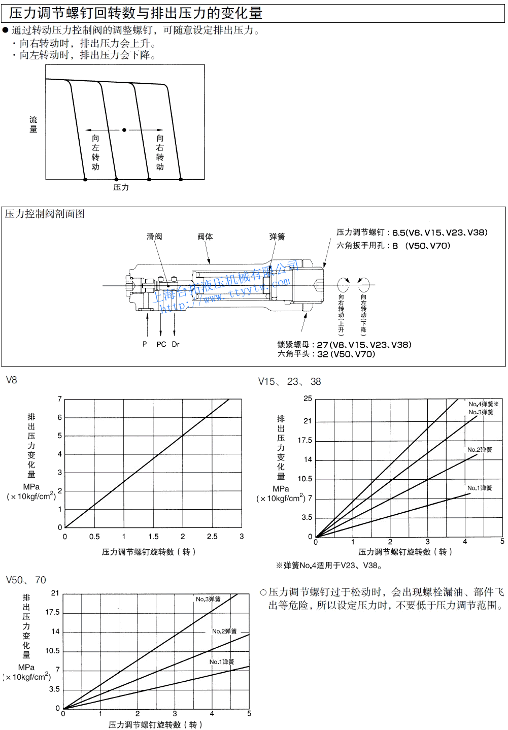 變量柱塞泵V系列壓力調(diào)節(jié)螺釘回轉(zhuǎn)數(shù)與排出壓力的變化量