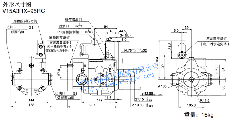 變量柱塞泵V15C*3RHX-95RC尺寸圖下載 變量柱塞泵V15C**RJ*X-95尺寸圖下載