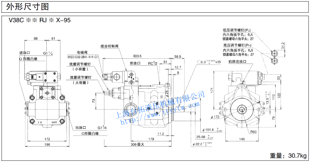 變量柱塞泵V38C**RJ*X-95尺寸圖下載 變量柱塞泵V38C*4RJ*X-95RC尺寸圖下載