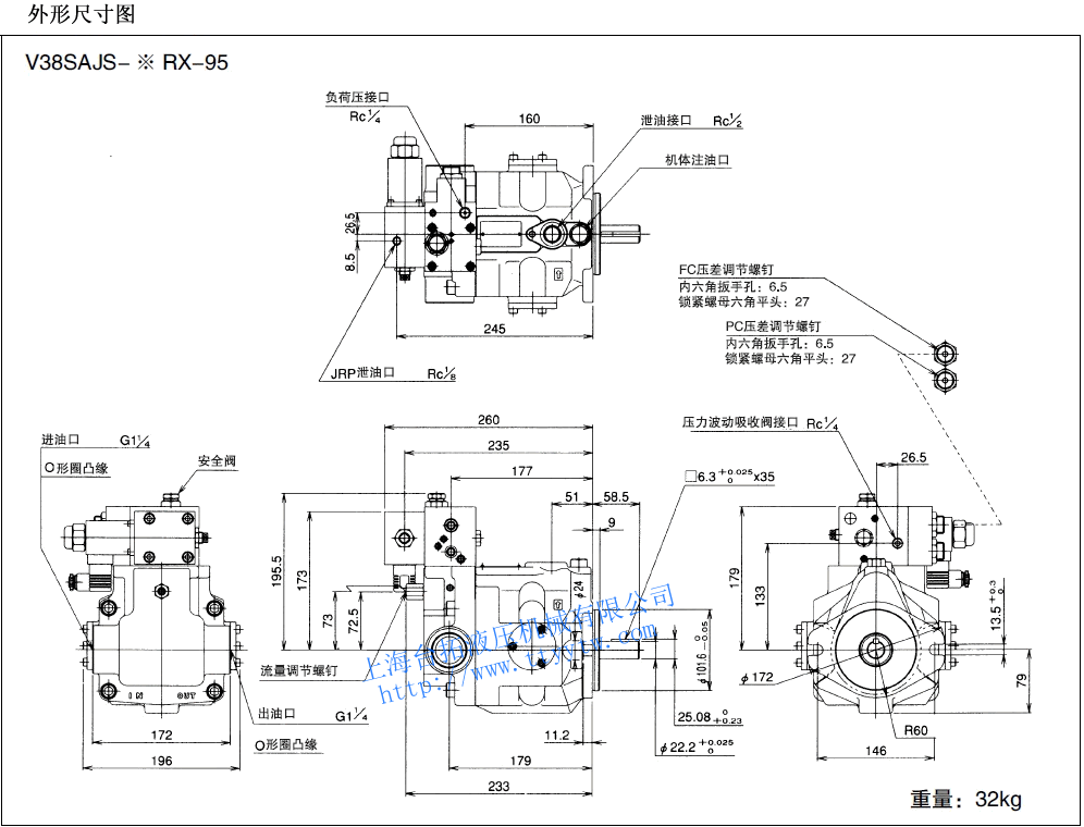 變量柱塞泵V38SA**RX-95尺寸圖下載 變量柱塞泵V38SA**R-95尺寸圖下載