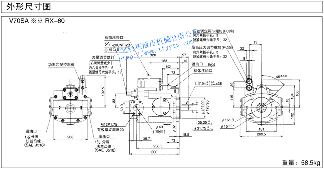 變量柱塞泵V50SAJS-*RX-20尺寸圖下載 變量柱塞泵V70A*RX-60尺寸圖下載