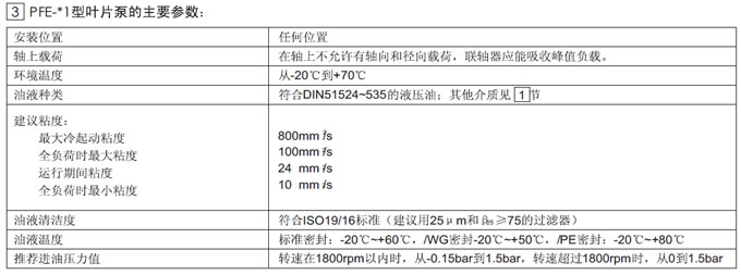 PFE系列高性能葉片泵主要參數(shù)