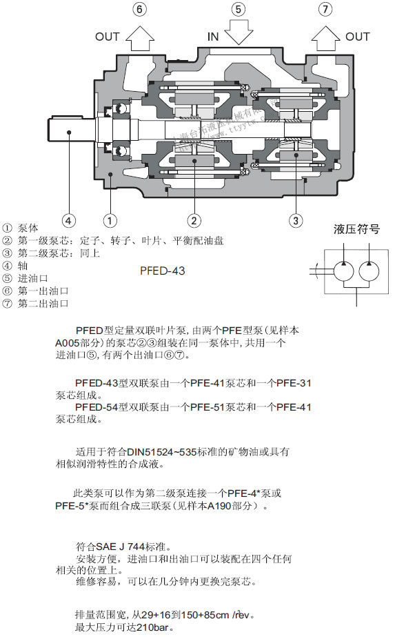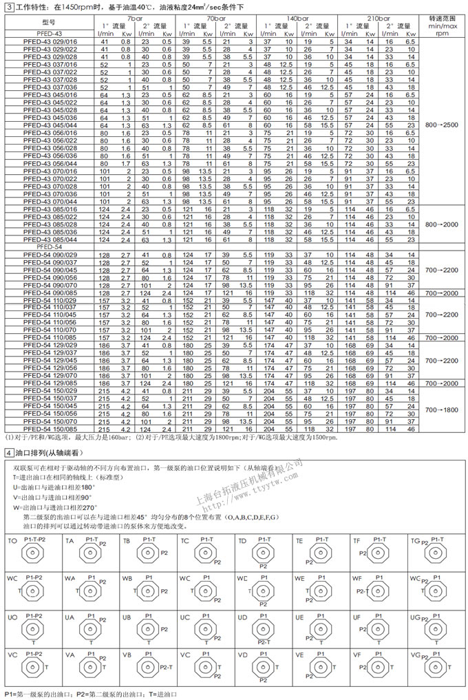 雙聯葉片泵PFED工作特性油口排列