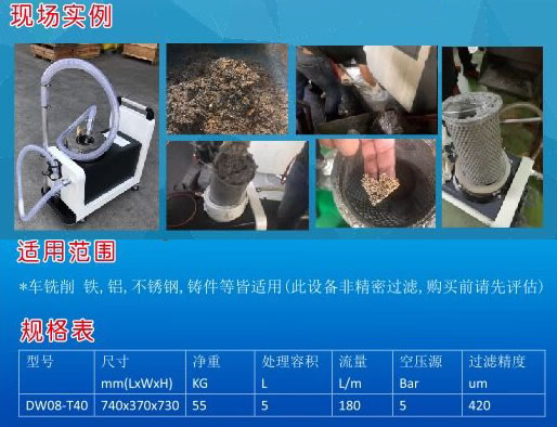 1、吸屑過濾機可以單獨使用,也可以搭配油水凈化循環(huán)機使用,只要是和油水有關的設備,都可以處理,讓水箱保持在最健康的狀態(tài)。