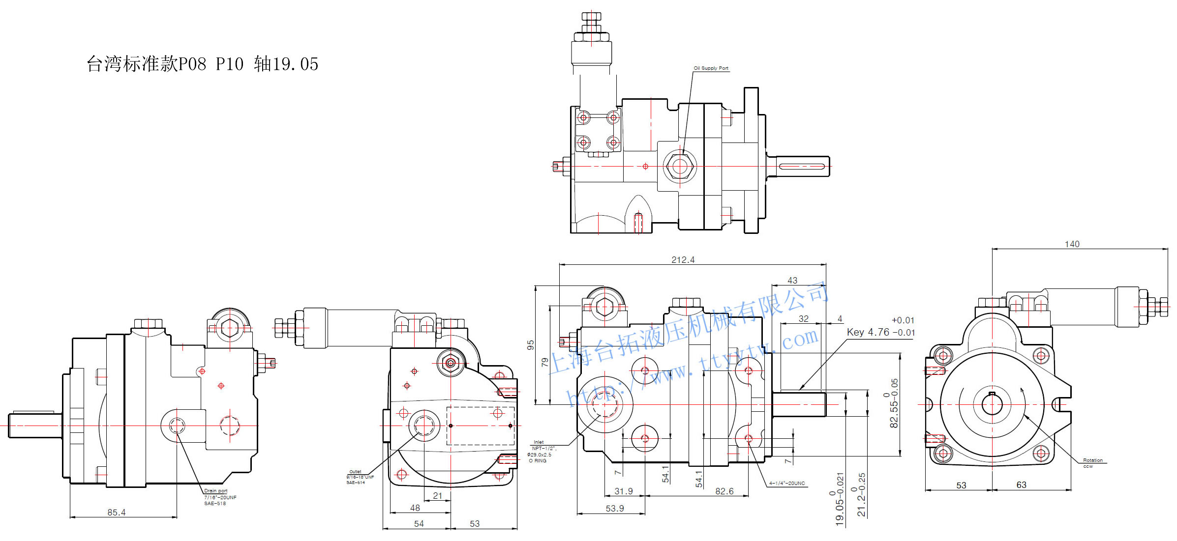 P 08 -A 1 -F -R - 01 型號(hào)說明 排量 控制功能方式 調(diào)壓范圍 安裝方式 旋轉(zhuǎn)方向