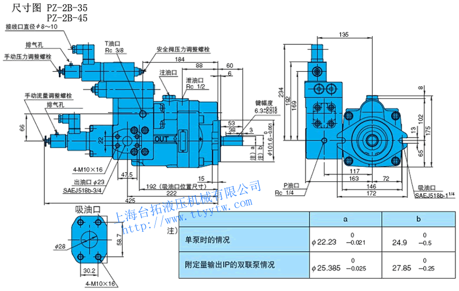 負荷感應變量柱塞泵PZ-2B-35/45尺寸圖下載 負荷感應變量柱塞泵PZ-3B-70尺寸圖下載