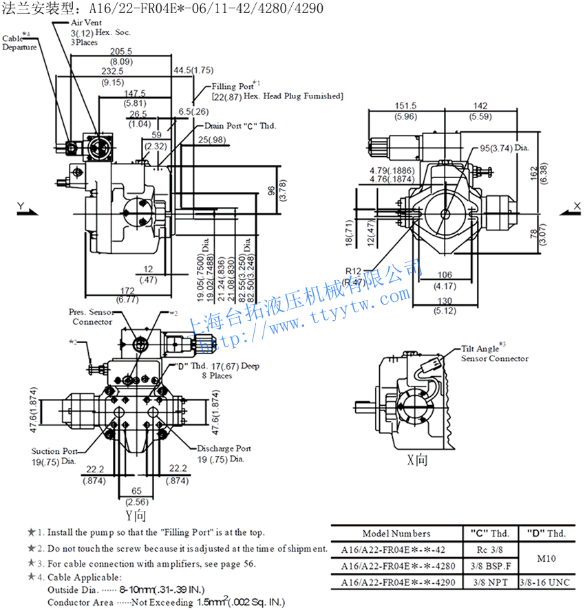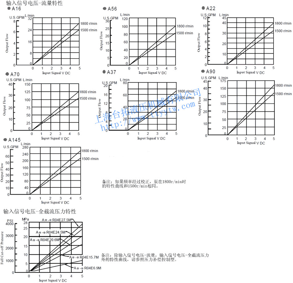 壓力/DC5V20.5 22.7 A22 22.2 16 16 40.0 20.5 22.7 A37 36.9 16 21 66.4 32.0 36.3 A45 45.0 16 17.2 81.0 32.0 36.3 A56 56.2 16 21 101.2 39.0 43.3 A70 70.0 25 28 126.0 64.0 76.0 A90 91.0 25 28 163.0 76.5 97.0 A100 100.0 21 21 180.0 76.5 97.0 A145 145.0 25 28 261.0 96.4 121.4 備注★1.調(diào)節(jié)壓力時(shí),必須確保全截流壓力永不超過允許的大壓力?!?.泵在壓力高于額定值情況下使用時(shí),泵工作條件應(yīng)受限制?!?.最流量因軸轉(zhuǎn)速而異,上表所列數(shù)值是軸轉(zhuǎn)速為1800r/min{rpm}時(shí),對(duì)于其他轉(zhuǎn)速,可依軸速的比例進(jìn)行計(jì)算。