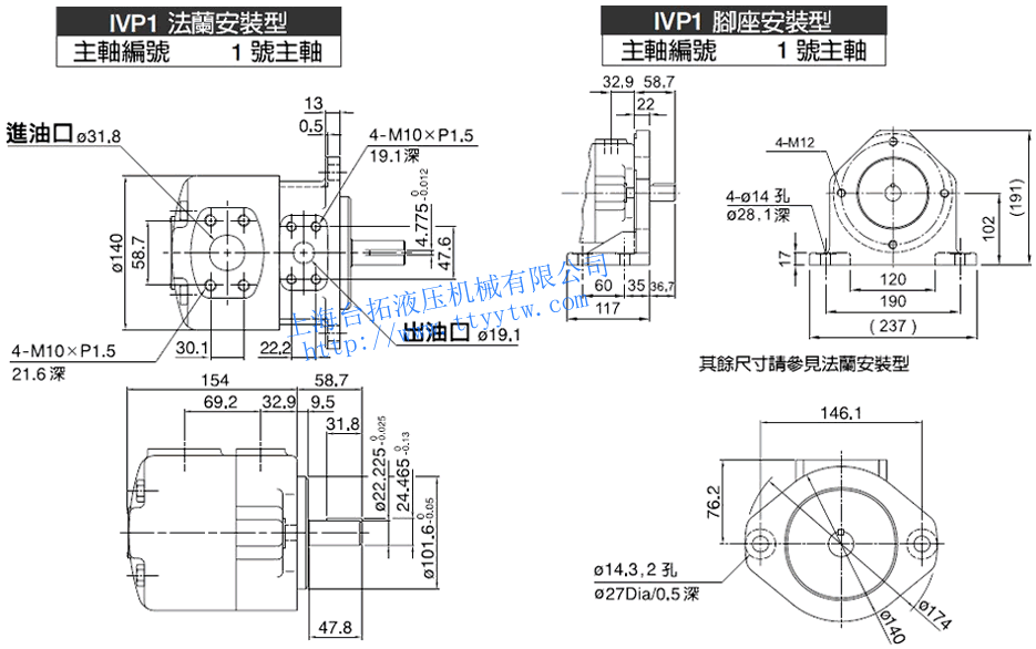 子母葉片定量泵IVP2(1號平鍵主軸)尺寸圖下載 子母葉片定量泵IVP2(86號平鍵主軸/1&86號主軸)尺寸圖下載