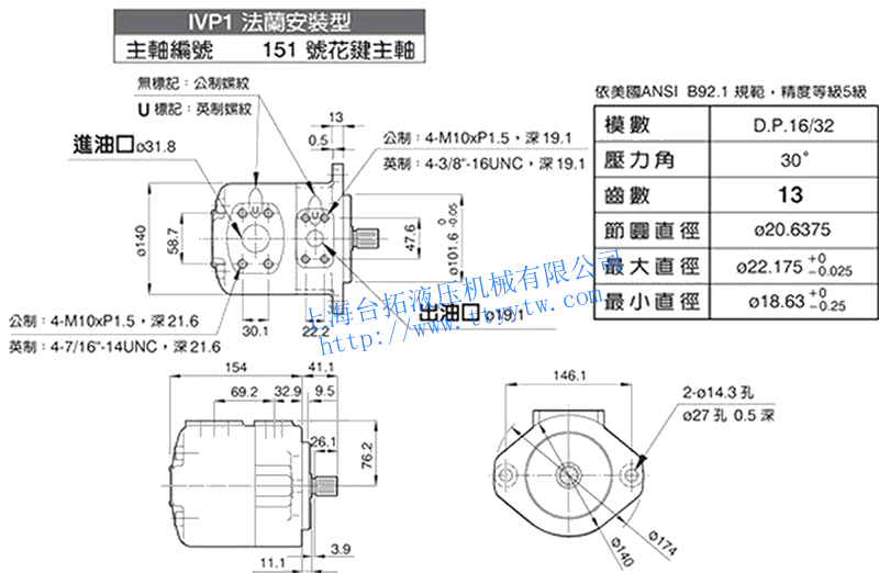 子母葉片定量泵IVP4(11號花鍵主軸)尺寸圖下載