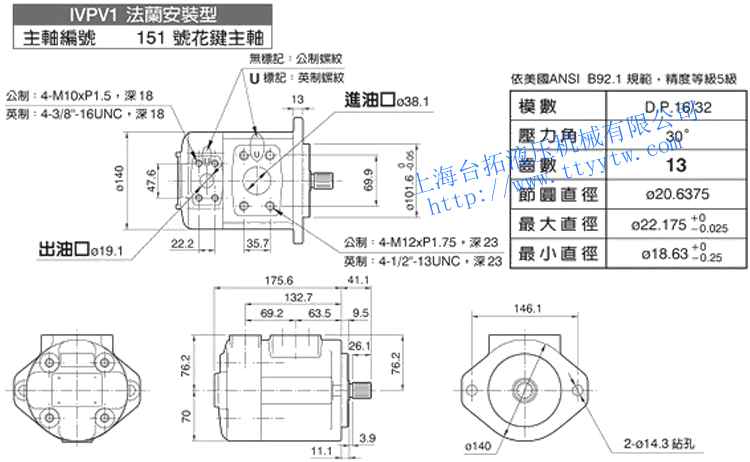 子母葉片定量泵IVPV4(11號(hào)花鍵主軸)尺寸圖下載