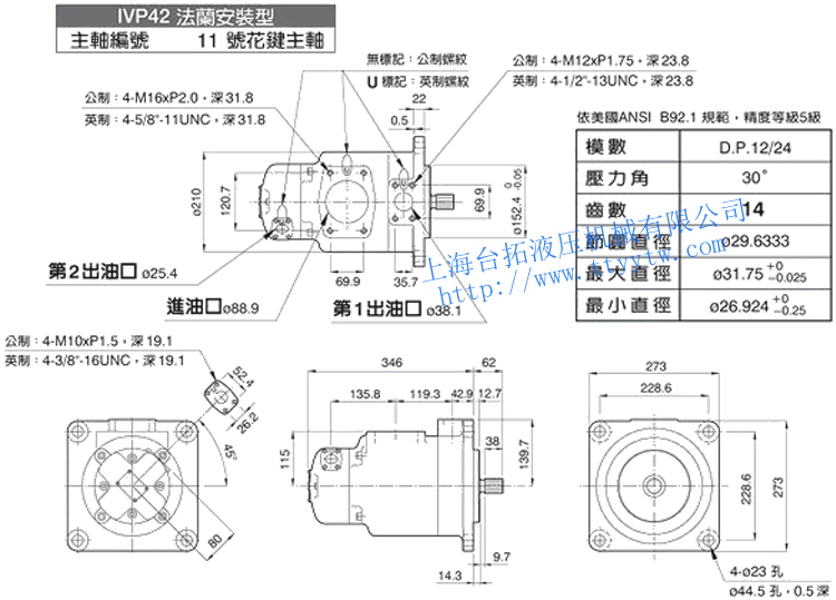 雙聯(lián)子母葉片定量泵IVP42(11號花鍵主軸)尺寸圖下載