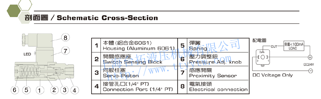 壓力繼電器PSB一般型,本產(chǎn)品為新型無接點式本體,24VDC電晶體感應(yīng)開關(guān),高負(fù)載。