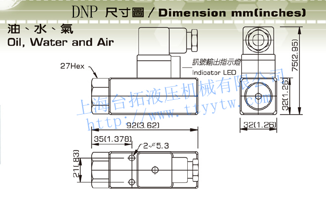 DNP -08K -21B 型式 壓力調(diào)整范圍 設(shè)計(jì)號 一般型隔膜式 見規(guī)格表 21B 壓力繼電器DNP規(guī)格表