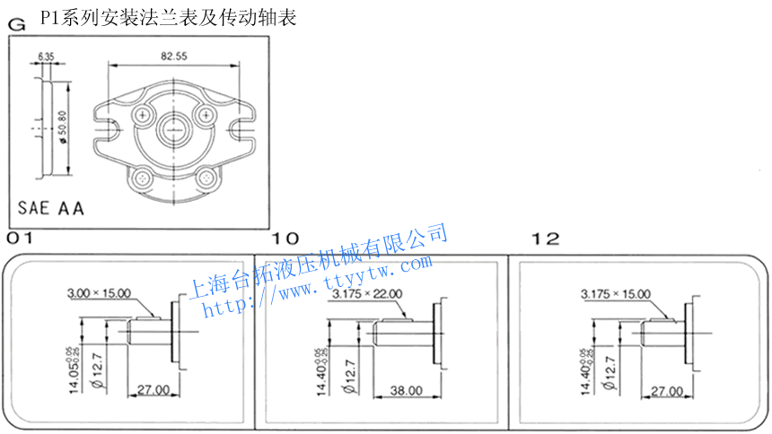 定量齒輪泵P1系列安裝法蘭表及轉(zhuǎn)動軸表