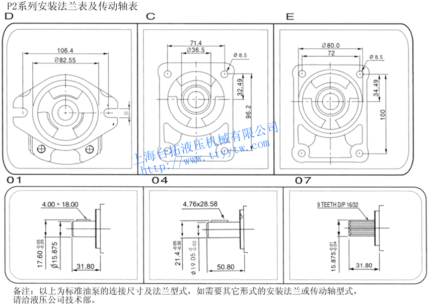 定量齒輪泵P2系列系列安裝法蘭表及轉(zhuǎn)動(dòng)軸表
