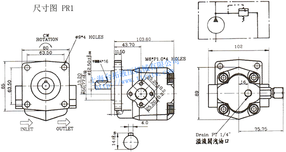 PR1210bar(3000 psi) 2cc/rev~12cc/rev JIS 4孔式 齒輪泵附調(diào)壓閥PR1系列規(guī)格表
