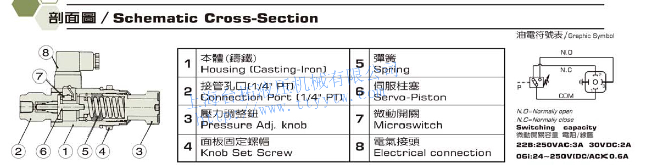 壓力繼電器DNF壓力直讀式,面板固定型,接管口徑:1/4" PT(PF,NPT)內(nèi)牙,負載:5A-125,250VAC,LOAD:5A,30VDC,0.15A,125VDC。