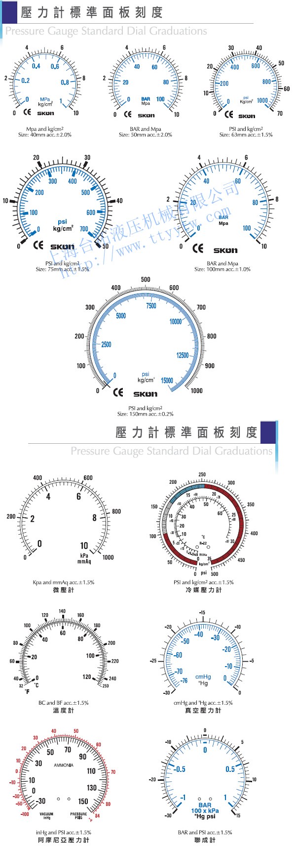 臺灣協(xié)鋼SKON壓力表標(biāo)準(zhǔn)面板刻度